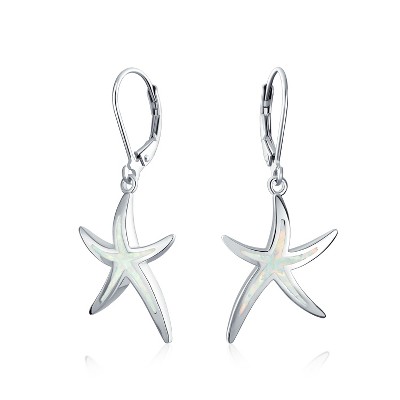 Bling Jewelry Blue Created Opal Accent Nautical Ocean Marine Life Starfish Drop Lever back Earrings .925 Sterling Silver