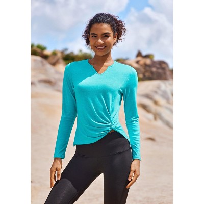 Pinspark Women's Long Sleeve V Neck Twist Front Workout T-Shirt