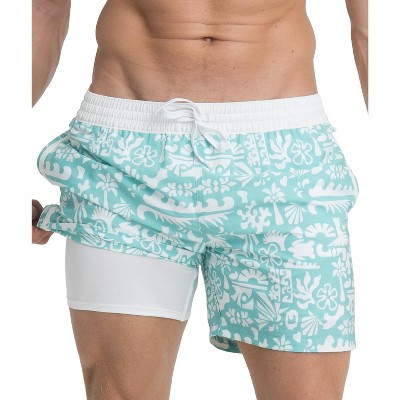 boards Men's 5.5" Compression Liner Primitive Aqua Swim Trunks