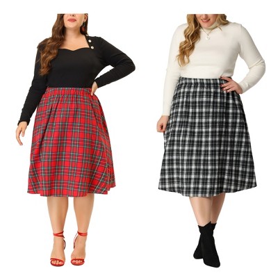 Women's Plus Size Plaid Elastic High Waist Flare Fall Two Piece A Line Skirts - Agnes Orinda