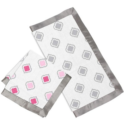 Bacati - Moroccan Tiles Pink/Gray Muslin 2 pc Security Blankets