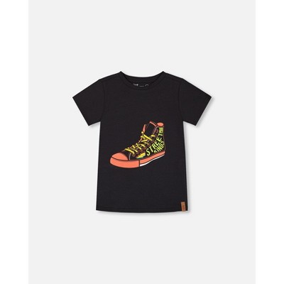 Deux par Deux Boy Organic Cotton Graphic Tee Black and Red Shoe - 2 Years