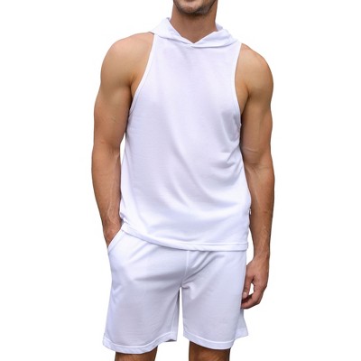 Clearlove Men's Athletic Tracksuit Set Sleeveless Hooded Tanks Tops Sweatsuit 2 Piece Casual Sports Shorts Set