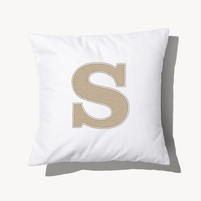 Personalization Mall Natural Initial Embroidered Applique Throw Pillow