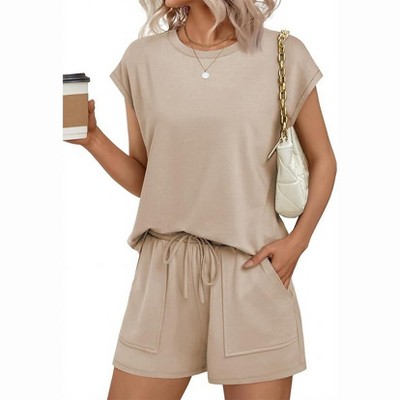 Ekouaer Women's Two Piece Lounge Set Oversized Boxy T-shirt Casual Short Sets Summer Travel Matching Set 2026 Fashion