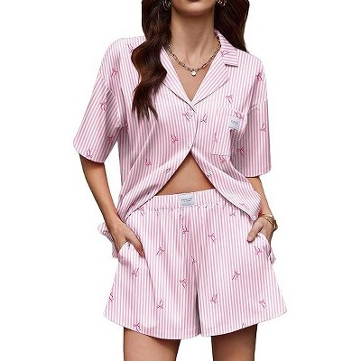 Ekouaer Two Piece Sets for Women Summer Lounge Sets Striped Shirts and Shorts Set Oversized Matching Outfit
