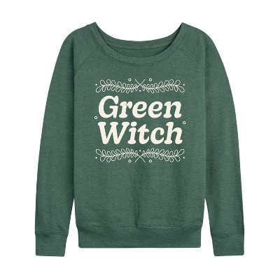 Women's - Instant Message - Green Witch Lightweight French Terry Wide Neck Long Sleeve Graphic Shirt