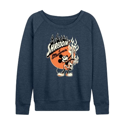 Women's - Disney - Shreddin And Strummin Lightweight French Terry Wide Neck Long Sleeve Graphic Shirt