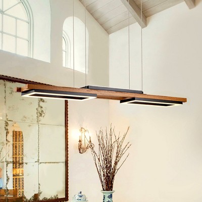 LLHZSY 5 Light Integrated LED Linear Pendant Chandelier 47 1/4" Wide Wood Light Fixture for Kitchen Island Dining Room