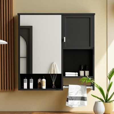 Costway Wall Mounted Bathroom Medicine Cabinet Storage Cupboard with Towel Bar Brown/Grey