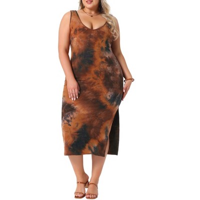 Women's Plus Size Side Slits Bodycon Sleeveless Tie Dye Midi Dress - Agnes Orinda