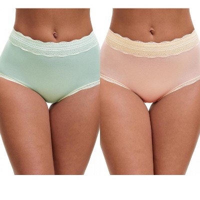INSPIRE CHIC Women's Mid Waisted Lace Trim Briefs Cotton Full Coverage Underwear Panties 2 Packs