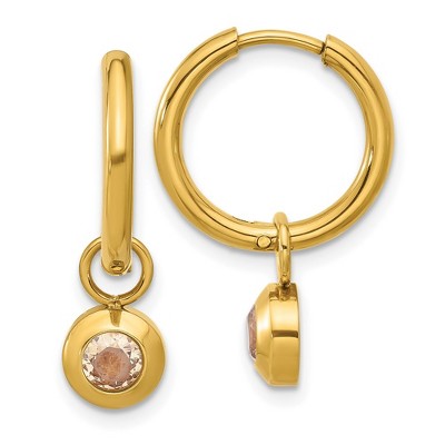 Chisel Stainless Steel Polished Yellow IP-plated with Removeable Champagne CZ Dangle Hinged Hoop Earrings