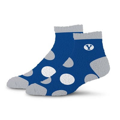 NCAA Brigham Young Cougars Big Dot Fuzzy Sleep Soft Socks: Ankle Knit Polka Dot Design