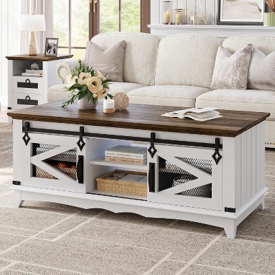 Acekool White Modern Coffee Table with 2 Handle-Free Drawers, Metal Legs & Open Back Shelf – Rectangle Center Table for Living Room, Easy Assembly