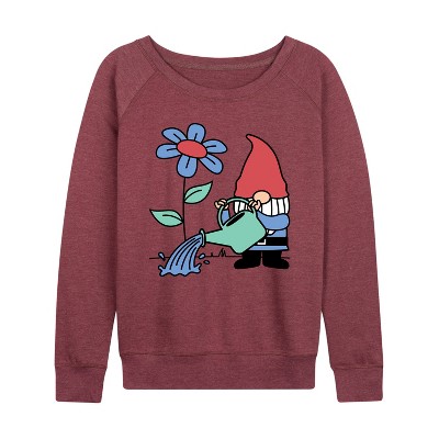 Women's - Instant Message - Gnome And Flowers Lightweight French Terry Wide Neck Long Sleeve Graphic Shirt