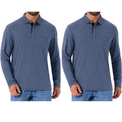 INSPIRE CHIC Men's Contrast Button Collared Pocket Long Sleeve Golf Polo T-Shirts 2 Packs