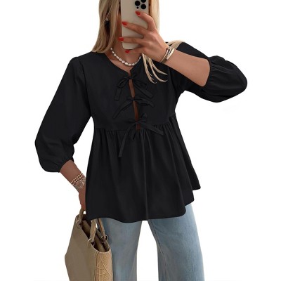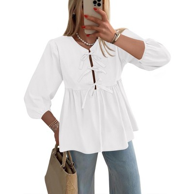 Coolmee Womens Dressy Casual Shirt Summer Work Blouses Bow Tie Front Short Sleeve Tops