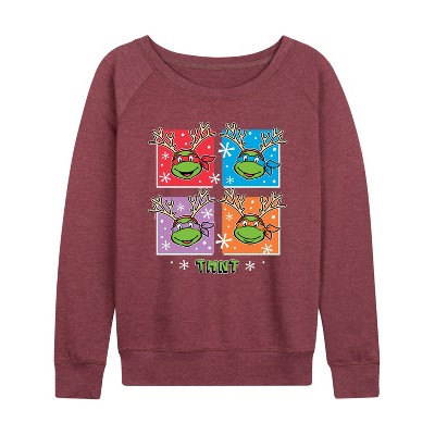 Women's - Teenage Mutant Ninja Turtles - Character Grid Lightweight French Terry Wide Neck Long Sleeve Graphic Shirt