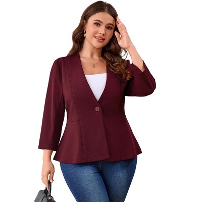 Plus Size Blazer for Women 3/4 Sleeve Open Front Office Cropped Blazer Jacket