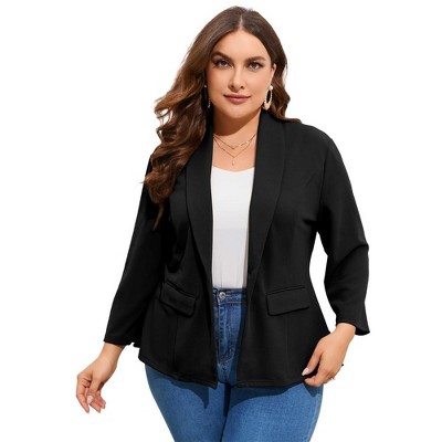 Women's Plus Size Lapel Button Down Long Sleeves Business Casual Suit Blazer with Pockets - Agnes Orinda