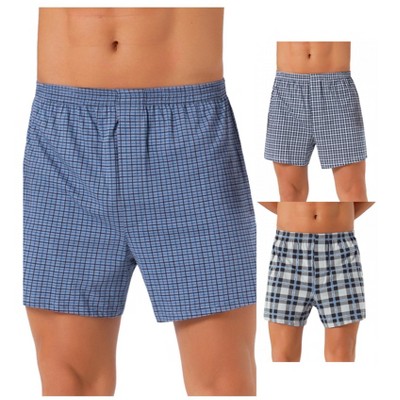 INSPIRE CHIC Men's 3 Pack Elastic Waistband Plaid Pattern Underwear Boxer Shorts