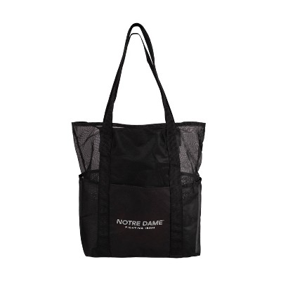 NCAA Notre Dame Fighting Irish Black Mesh Tote: Sports Pattern, Polyester, Shoulder Strap
