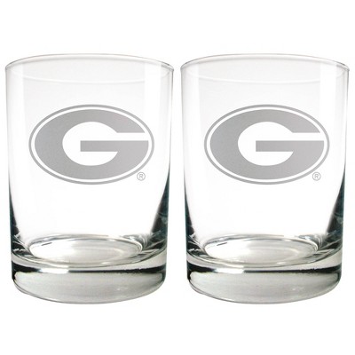 NCAA Georgia Bulldogs Laser Etched Rocks Glass Set - 2pc: 12oz Pint Glass Drinkware