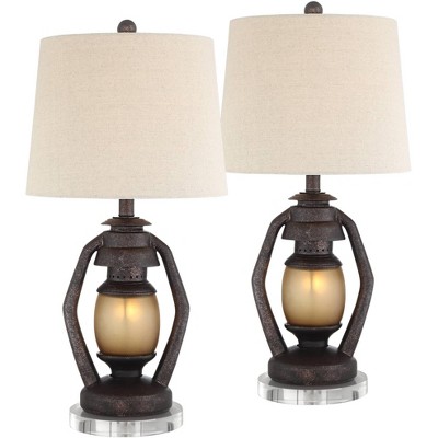 John Timberland Otero Rustic Table Lamp Southwest 27" Tall Faux Mottled Stone Cream Linen Drum Shade for Bedroom Living Room Bedside Nightstand Kids