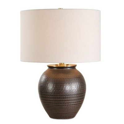 Uttermost Hawkins Table Lamp-Ribbed Bronze Ceramic with White Linen Shade
