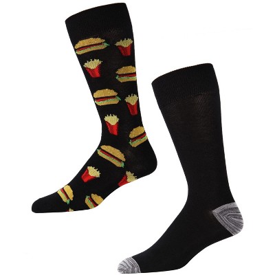 Memoi Men's 2 Pair Pack Burger and Fries Bamboo Blend Crew Socks