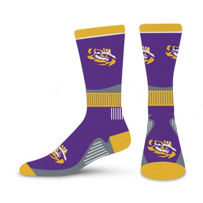 NCAA LSU Tigers Large Crew Socks: Cushioned Heel & Toe, Knit Logo Pattern