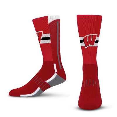 NCAA Wisconsin Badgers Streak Team Color Crew Socks - L: Logo Pattern, Midweight Fabric