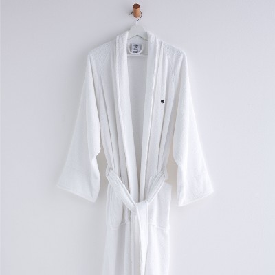 Linum Home Textiles 100% Turkish Cotton Personalized Terry Bathrobe in White Bookman Font