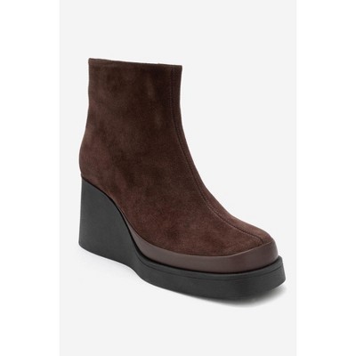 Journee Signature Women's Genuine Leather Hydra Almond Toe Stacked Ankle Booties