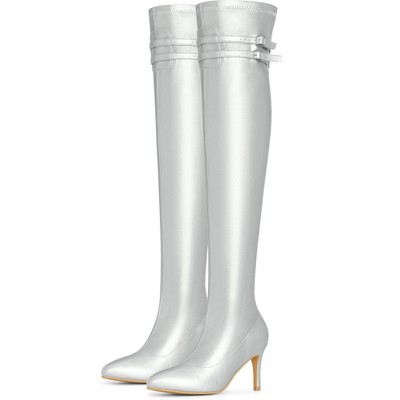 Allegra K Women's Pointed Toe Side Zip Stiletto Heel Knee High Dress Boots