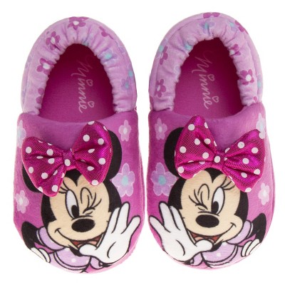 Disney Girls's Minnie Mouse Slippers - Plush Lightweight Warm Comfort Soft Aline House Slippers - Pink Bow Minnie (size 5-12 Toddler)