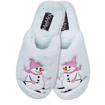 Memoi Women's Snowman Ski-Sons Hard Bottom Plush Slippers