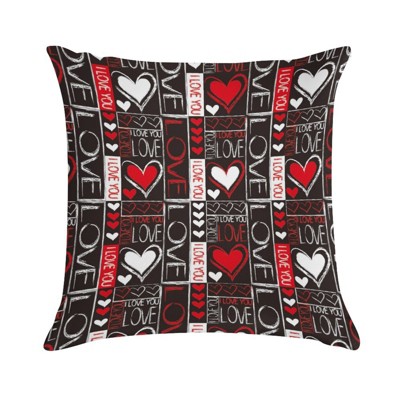Set of 2 18x18in Red & White Patterned Hearts Valentine Pillow Covers - Soft, Machine Washable