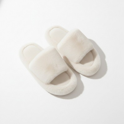 Anna-Kaci Lounge Women’s Plush Open Toe Slide House Slippers with Wide Soft Upper and Cushioned Footbed- 7.5-8, White