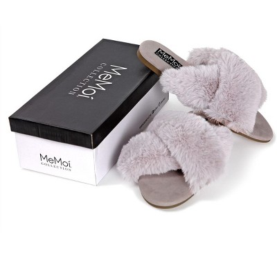 Memoi Women's The Adela Mule Hard Criss-Cross Faux Fur Sole Slippers