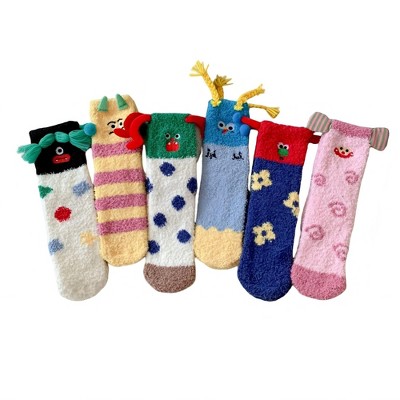Anna-Kaci Women's 6-Pair Plush Crew Socks Set with Playful Character Designs Soft Fuzzy Texture and Cozy Comfort Fit - Multicolors