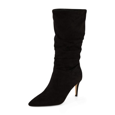 CUSHIONAIRE Women's Porsha Slouchy Vegan Suede Mid-Calf Scrunch Boot with Pointed Toe, Memory Foam & 3-Inch Heel | Wide Widths Available