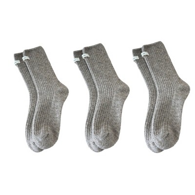 Anna-Kaci Women's 3-Pair Ribbed Knit Crew Socks with Bow and Nordic Pattern Detail - Gray