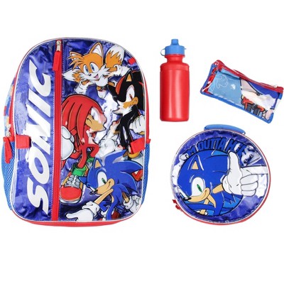 Sonic The Hedgehog Backpack 16" Fast Molded Lunch Cinch Bag 5PC Set