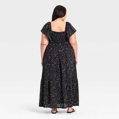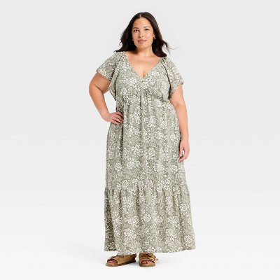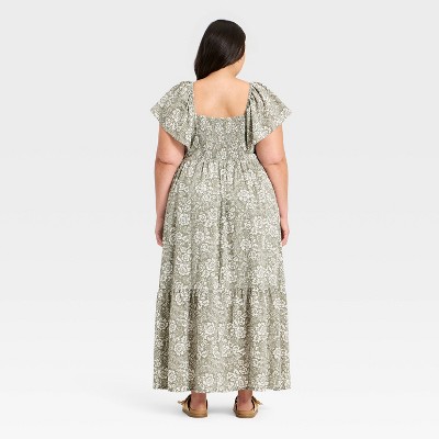 Women's Flutter Short Sleeve Floral Maxi A-Line Dress - Universal Thread™