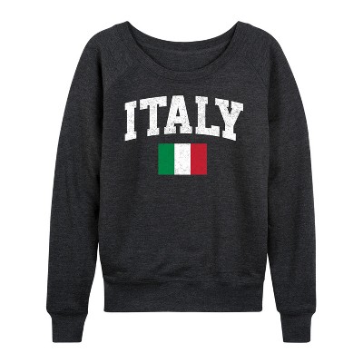 Women's - Instant Message - Italy Flag Lightweight French Terry Wide Neck Long Sleeve Graphic Shirt