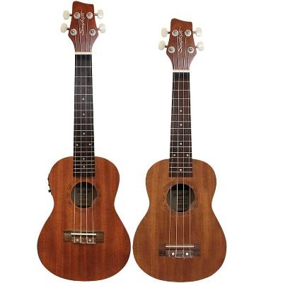 Sawtooth Mahogany Soprano and Tenor Electric Ukulele w Fishman KUL-101 Preamp/Built In Tuner 2 Pack