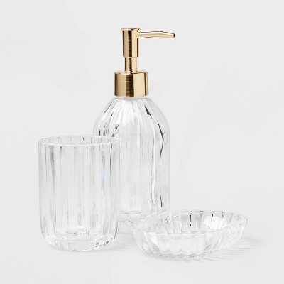 3pc Luxe Coordinate Bath Bundle Set - Threshold™: Elegant Glass Ensemble with Tumbler, Dish