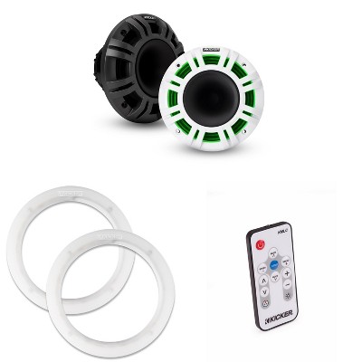 Kicker 48KMXL654 LED 6.5" Horn-Loaded Marine Coax with a Pair of 50KLSR65 6.5 Led Speaker Ring & LED Remote Bundle